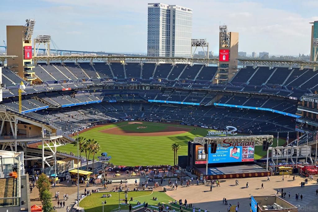 Batter Up! Step into urban luxury on the 13th floor of Diamond Terrace, offering breathtaking views of Petco Park and Gallagher Square from your private balcony?perfect for catching games, concerts, or stunning sunsets. This sleekly remodeled home features modern finishes, high ceilings, in-unit laundry, gated assigned parking, and spacious storage locker. Exclusive access to the rooftop terrace with BBQ, dining areas, fitness center and lounge, all just steps from downtowns vibrant dining and entertainment scene. Just in time for baseball season, this stunning 13th-floor corner unit at Diamond Terrace is a home run! With JAW-DROPPING views of Petco Park, Gallagher Square, City, Coronado Bridge, and even the islands, youll have front-row seats to all the action?right from your private balcony. Enjoy the best of urban living with the convenience of an in-unit washer/dryer, gated assigned parking, a generously sized storage locker, and spacious rooms featuring soaring ceilings. A stylish top-to-bottom designer remodel! Common area rooftop terrace, with dining areas and BBQ, as well as a fitness center and lounge. The ideal location for easy exploration of endless dining and entertainment options that downtown has to offer. Park at the Park across the street is perfect for your pup. VA Approved,1 pet allowed under 100lbs, 2nd pet possible with HOA approval. Check out the virtual tour!